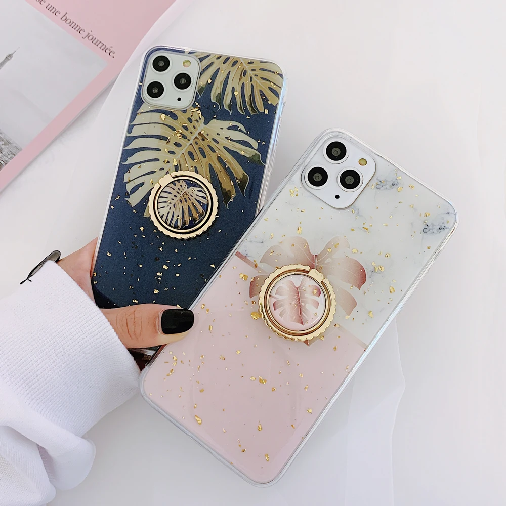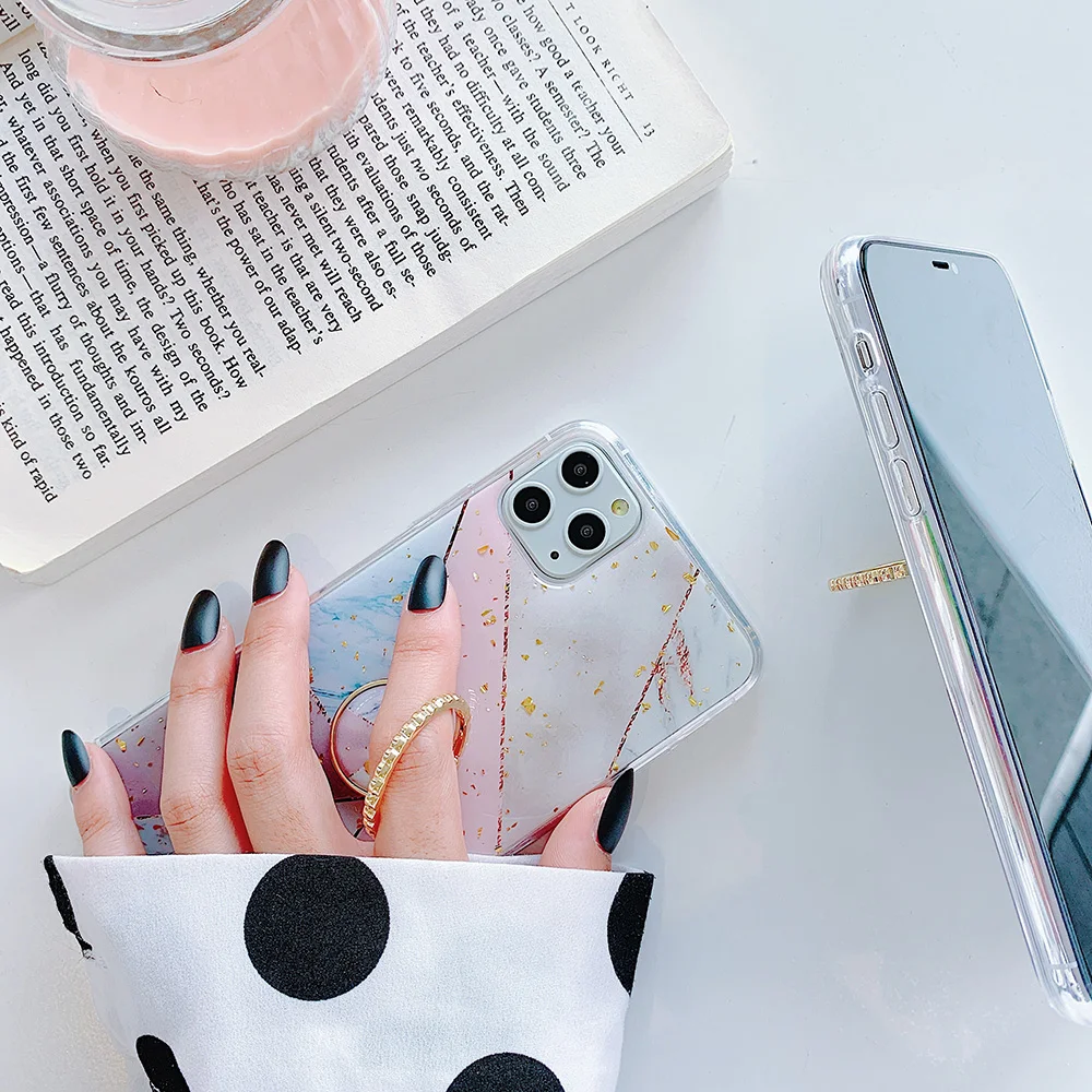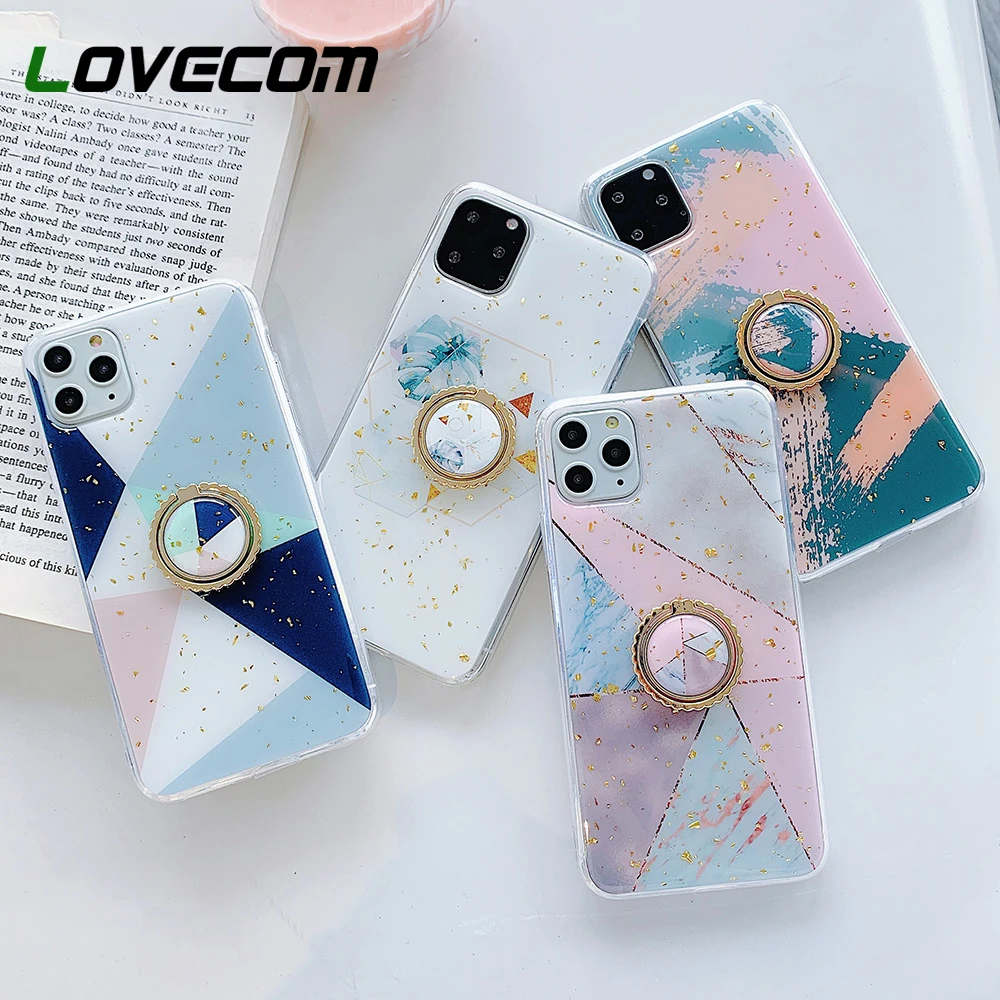 LOVECOM Phone Case For iPhone 11 Pro XR XS Max 6 6S 7 8 Plus X Soft Electroplate Geometric Marble Back Cover With Finger Ring