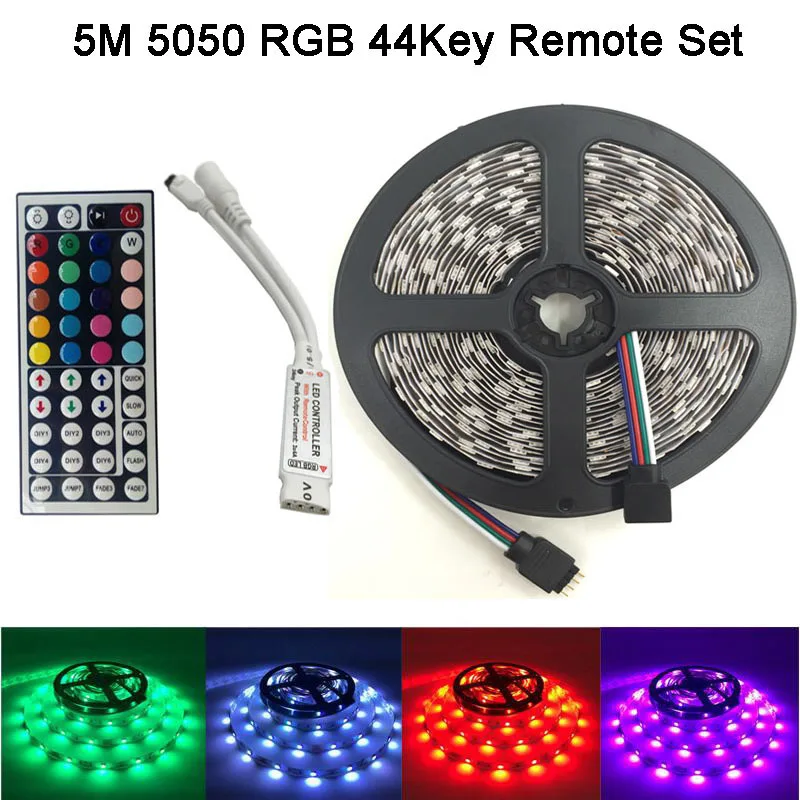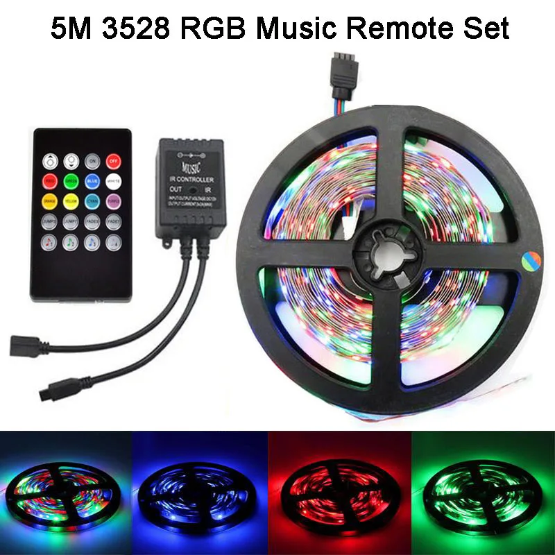 Cheap Non-waterproof RGB 5050 3528 LED strip light 5m 300 leds 60LEDs/M ruban led tape diode with 24Key/4